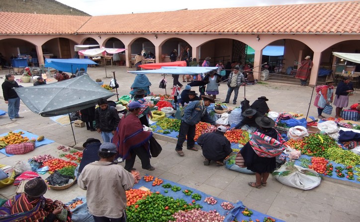 La Bolivie est un pays où les marchés typiques ont encore lieu dans les villes et villages. Un des plus colorés et accessibles est celui de Tarabuco. Situé à 65km de Sucre, ce village d’habitude paisible, change complètement de visage tous les dimanches. Très tôt le matin, des camions remplis de produits et de producteurs, arrivent au village, depuis toutes les communautés environnantes. Les ruelles deviennent des échoppes et étals à même le sol. Tous les produits trouvent une place. Des paysans habillés en costume traditionnel de chaque communauté, cherchent à acheter un produit. Ce marché est aussi l’occasion d’admirer les costumes des hommes et des femmes dans la tradition Jalq’a. Se mélanger à la foule, et aux couleurs des costumes est une expérience inoubliable à vivre.