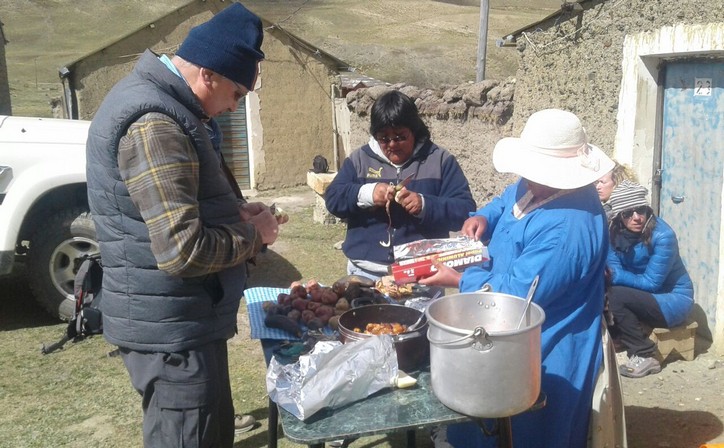 Le matin, après avoir pris un délicieux petit déjeuner à base de API (boisson chaude traditionnelle à base de mais violet) et de buñuelos (beignets), nous partons avec les bergers pour emmener les alpagas et lamas vers leurs pâturages. De retour à la maison, nous nous consacrons à la préparation du repas traditionnel de la Huatia (cuisson des aliments à l’intérieur d’un four en pierre). L’après midi, nous ferons la visite des familles du village, et selon la saison nous visiterons les champs de culture, la fabrication du fromage ou du chuño (pomme de terre gelée), et la fabrication des matelas en paille. En fin d’après midi, retour à La Paz.