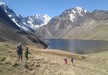 Petit déjeuner. Rencontre avec notre équipe de muletiers puis départ en longeant la rive droite du lac, sur le versant sud-ouest de la Cordillère. Nous montons notre premier col 5060 m. |