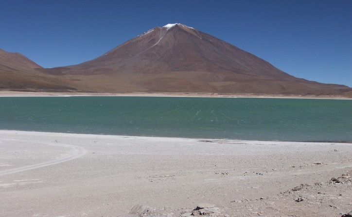 Traversée cap sud-ouest pour reprendre la piste qui traversera cette région dominée par le volcan « Ollague », puis la région désertique sera décorée par des petits lacs tous différents les uns des autres en couleurs et odeurs, quelques uns habités par la faune locale adaptée à cet environnement. Nous arrivons à l’hôtel situé au bord de la lagune Hedionda.